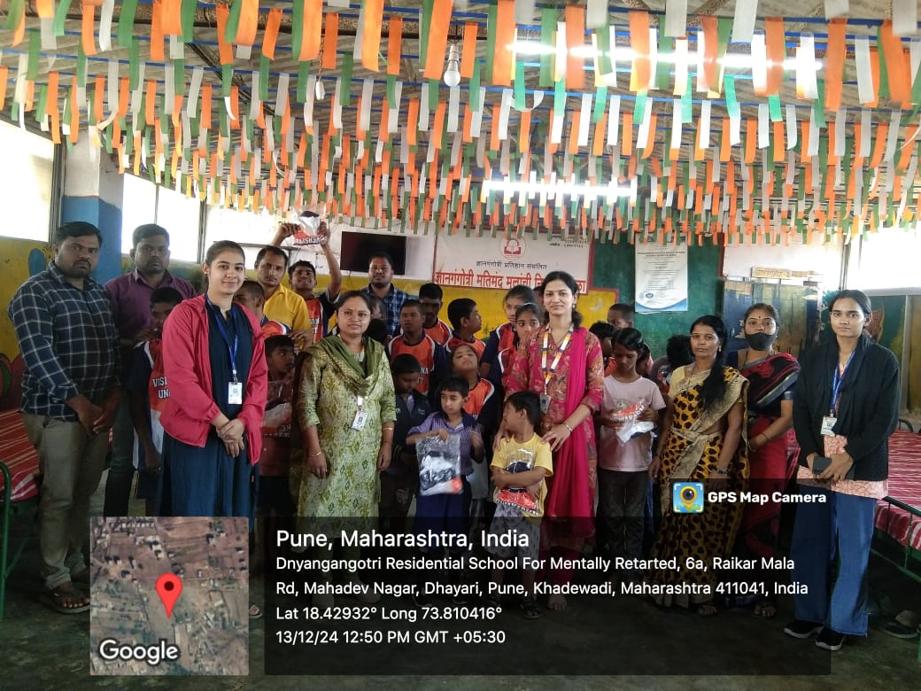 The Physical Education and Sports Section, along with the Sports Council of Vishwakarma University, Pune, successfully organized an inclusive sports event, “Sports for All,” on December 13, 2024, at Dnyangangotri Residential School, Dhayari, Pune. Dedicated to children with disabilities, the event aimed to encourage their participation in sports and promote inclusivity. The overall event was coordinated by Prof. Prajakta Kapadnis, Assistant Professor at the School of Pharmacy, Vishwakarma University, Pune. Prof. Kirti Deshpande, supported by student volunteers, conducted various activities for the children.