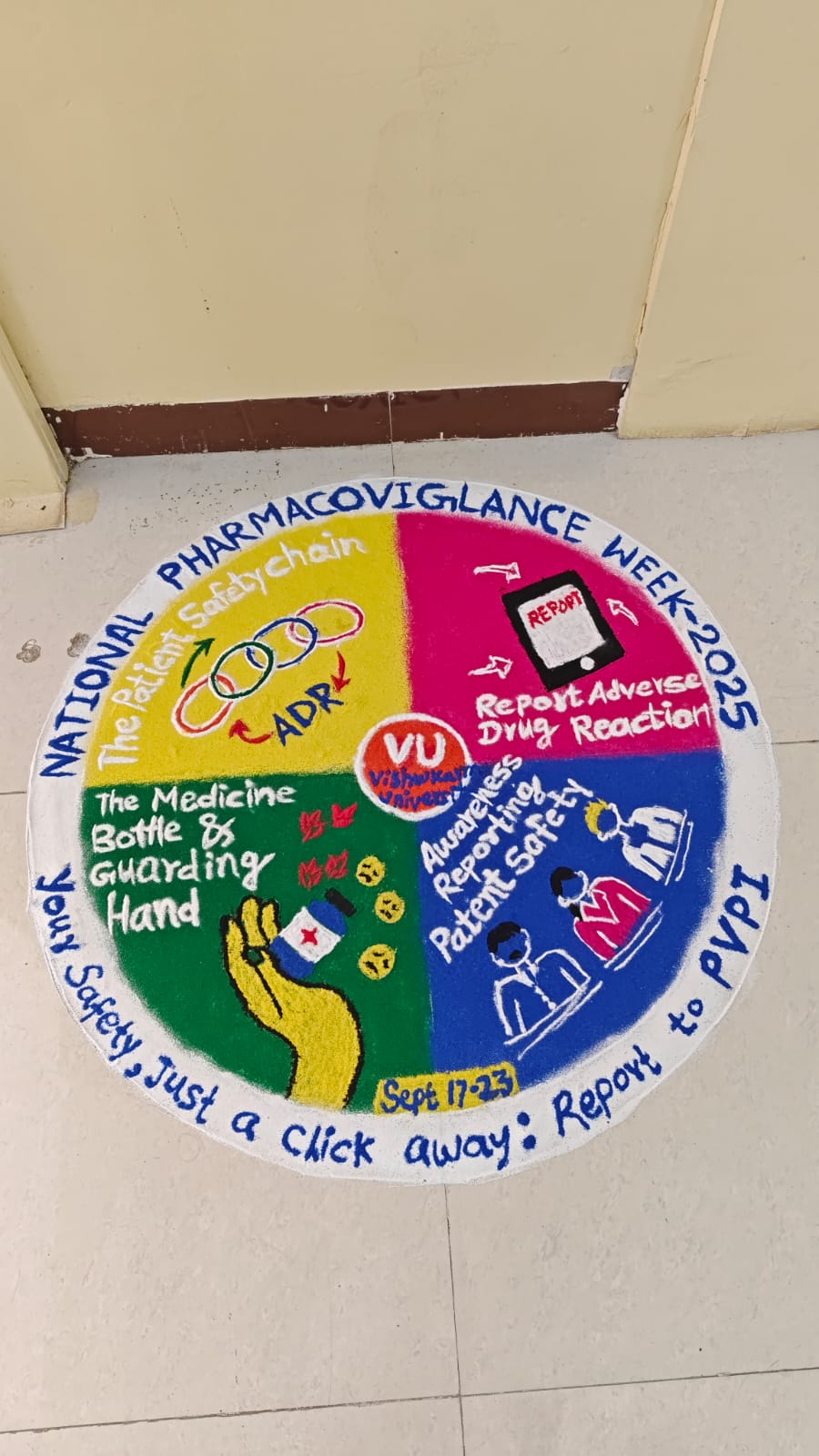 The School of Pharmacy, Vishwakarma University, Pune, successfully observed National Pharmacovigilance Week 2025 from September 17th to 23rd. The theme was “Your Safety, Just a Click Away: Report to PvPI.” This week-long program aligned with the Pharmacovigilance Programme of India to promote awareness of Adverse Drug Reaction reporting, safe medicine use, and medication adherence.