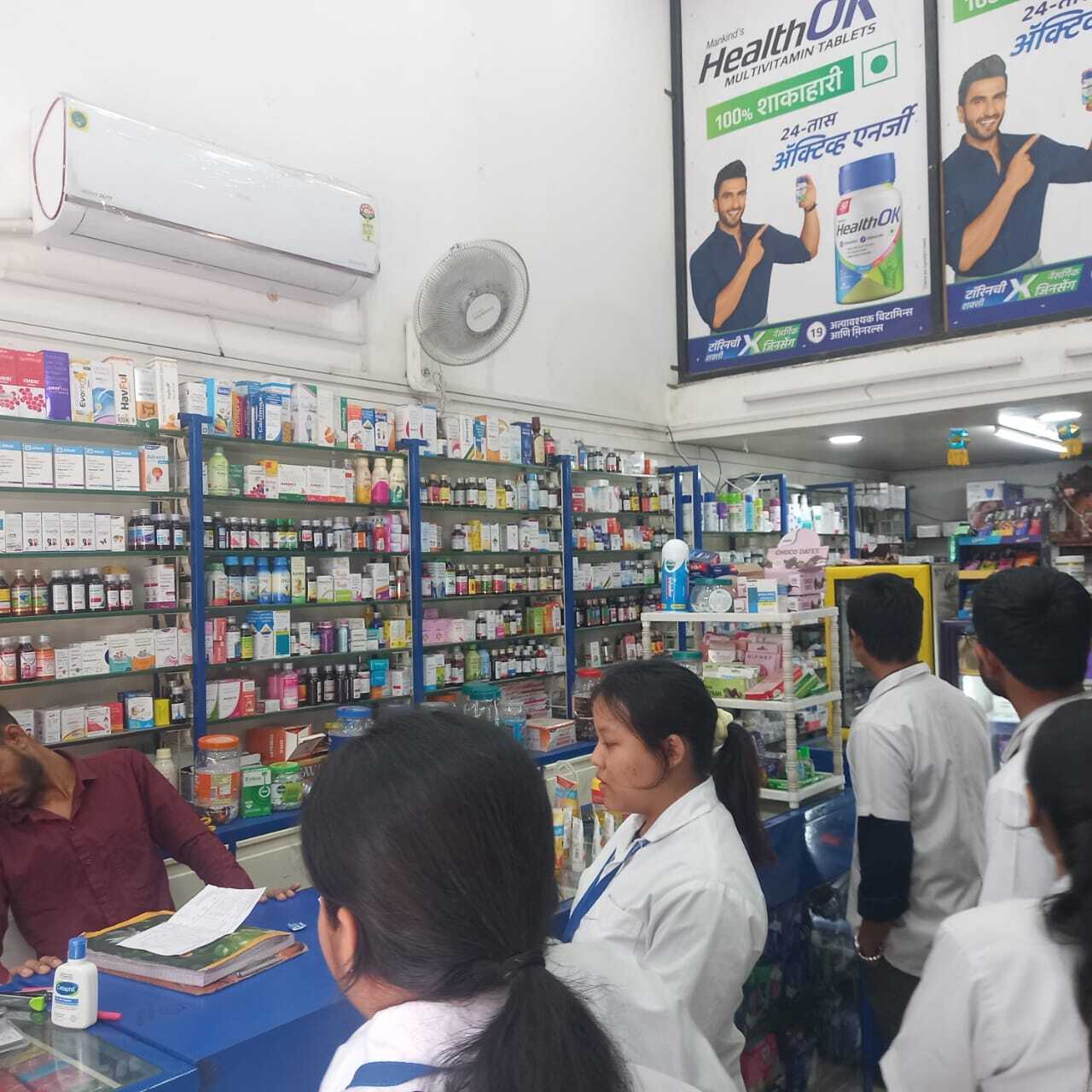 A community pharmacy visit was organized to provide practical exposure and enhance understanding of community pharmacy operations among students. Prof. Kirti Deshpande organized a visit for second-year D. Pharm students on 29th December 2025 at 10:00 a.m. atRamdev Medical, located opposite Shantinagar, Kondhwa, Pune. The objective of the visit was to familiarize students with day-to-day community pharmacy practices, including dispensing procedures, inventory management, storage of medicines, and patient interaction.