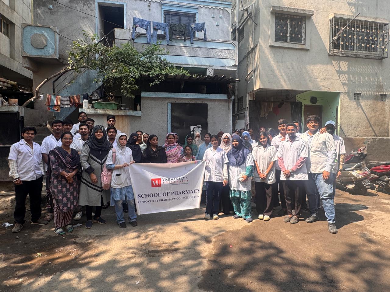 The School of Pharmacy, Vishwakarma University conducted a community outreach activity titled 'Community Awareness on Medicine Use' at Kondhwa, Pune. The program aimed to promote safe and rational use of medicines among the public.