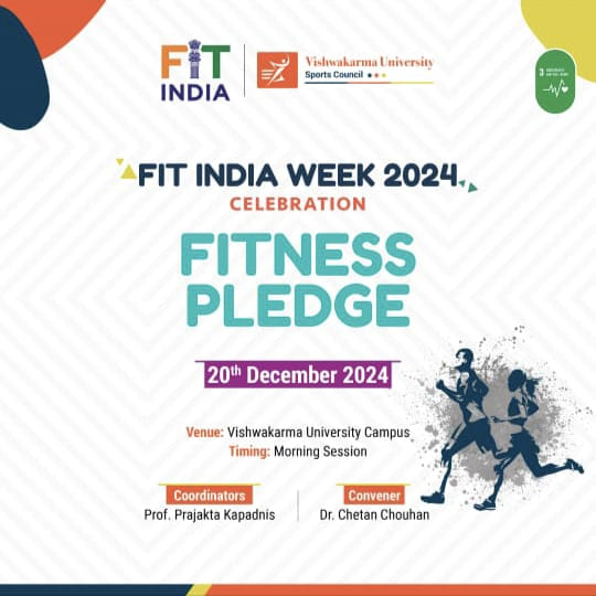 On 20th December 2024, a Fitness Pledge Activity was conducted as part of the ongoing FIT India Week celebrations at Vishwakarma University. The activity aimed to inspire participants to commit to a healthier and more active lifestyle by taking a collective pledge for fitness.
