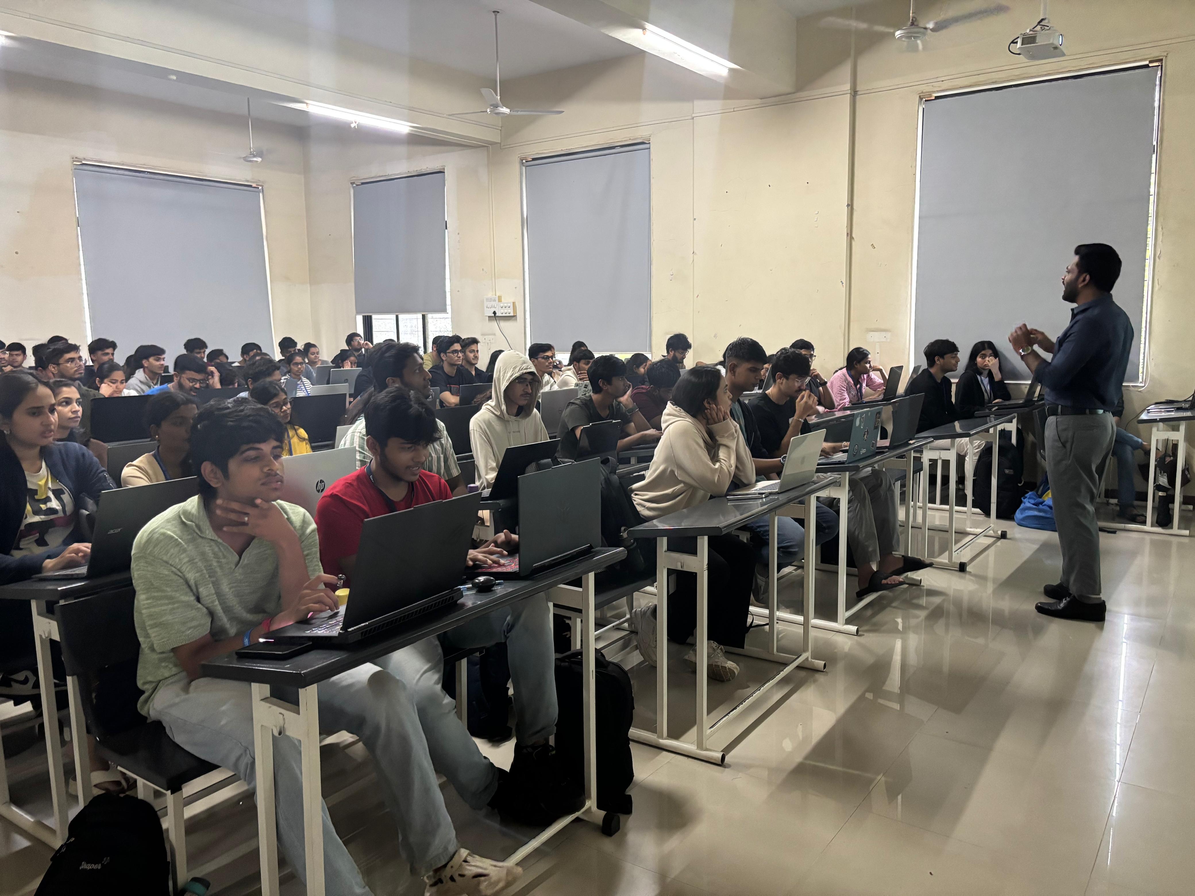 The event was organized by the Training and Placement Cell in collaboration with the Department of Artificial Intelligence, Faculty of Science & Technology, Vishwakarma University.The session was conducted by Aditya Dambale and Rohidas Shelar who guided students on The IBM SkillsBuild for College program provided students with access to the IBM Cloud platform, enabling them to gain hands-on experience with cloud-based applications widely used across industries. The training focused on emerging technologies such as data science, cloud computing, artificial intelligence, and machine learning, ensuring that students acquired knowledge in high-demand domains. A practical learning approach was adopted through a blend of online courses, interactive sessions, and real-world projects using IBM Watson Studio, which helped students strengthen their problem-solving and analytical skills. Participants were introduced to Large Language Models (LLMs), prompting techniques, and data analytics. The hands-on activities included crop recommendation using Watson Machine Learning with AutoAI, creating Jupyte notebooks with IBM Watson Studio, data refinement using IBM Data Refinery, and building a chatbot for college admissions with Watsonx Assistant. Additional sessions covered Prompt Lab with IBM Granite LLM, Agentic AI, and a discussion on IBM Events and Project-Based Learning (PBL), providing practical exposure to real-world AI and cloud applications.