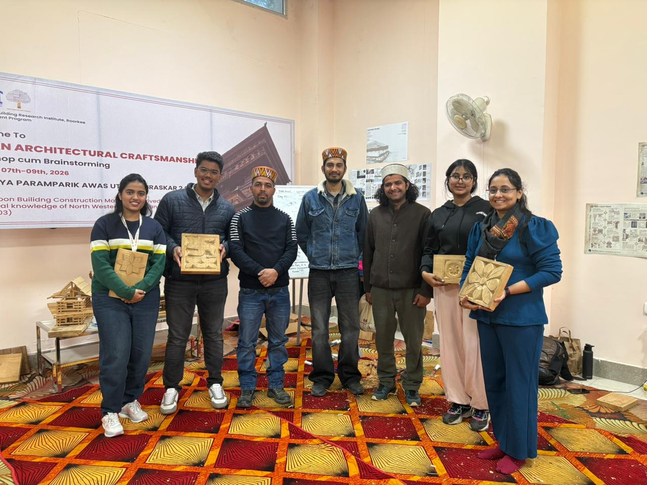 On the final day, the workshop introduced students to Aipan, a traditional folk art of Uttarakhand. Through a lecture and guided practical sessions, participants explored its cultural significance and translated the art form into wall-based and freehand applications. The workshop concluded with a valedictory session and certificate distribution, marking a meaningful learning experience rooted in craft, culture, and hands-on architectural understanding.