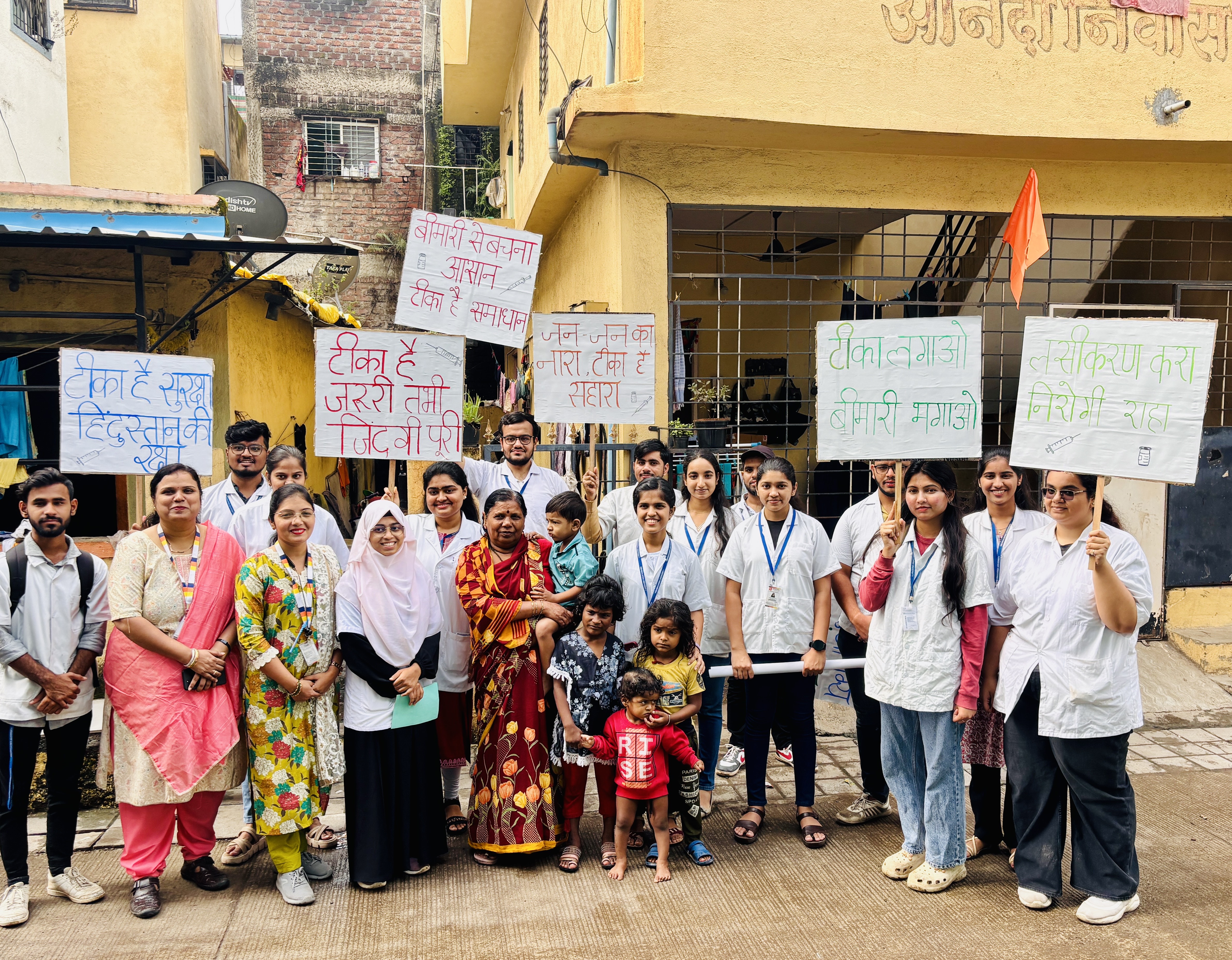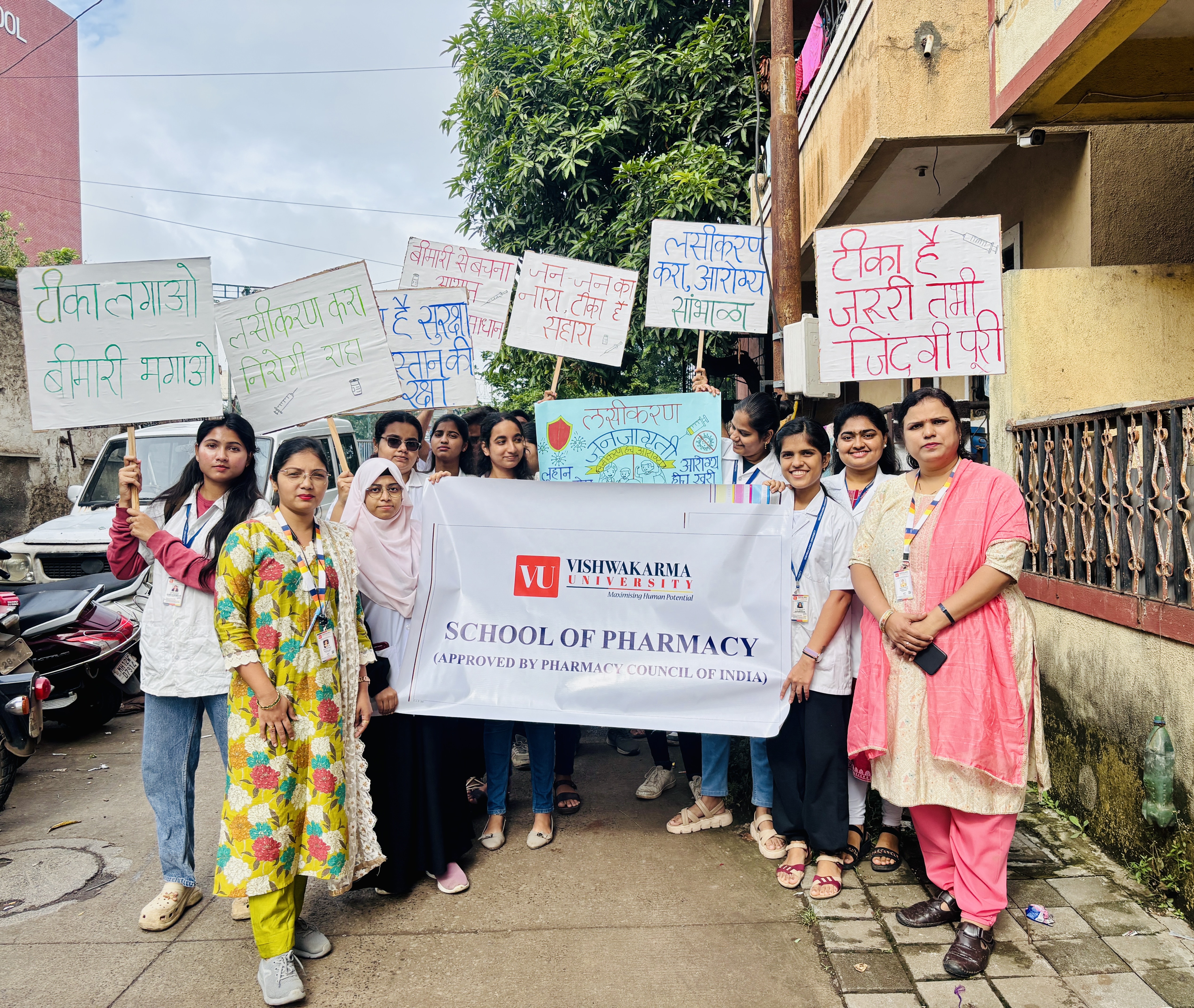 The School of Pharmacy, Vishwakarma University, Pune in collaboration with Centre of Sustainability Nexus organized a Vaccination Awareness Drive on the theme “Safe Care for Every Newborn and Every Child”. Highlights or the activities are Awareness rally with placards & slogans on child immunization, Health education sessions for parents & caregivers, Distribution of IEC materials in simple local language, Interactive sessions to clear myths & misconceptions. The drive encouraged parents and children to get vaccinated, become responsible for self-care and contribute to SDG 3: Good Health and Well-being (Ensure healthy lives and promote well-being for all at all ages) and SDG 4: Quality Education (Providing health literacy and education to parents and caregivers)