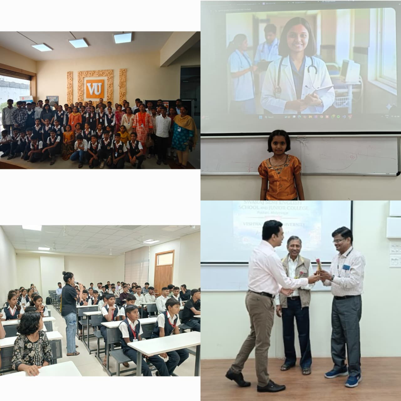 Vishwakarma University hadan opportunity to welcome students and teachers from Swaraj Semi-English Medium School on Tuesday, 6th January2026. The visit was organized to introduce school students to the university environment, higher education opportunities, and emerging technologies.