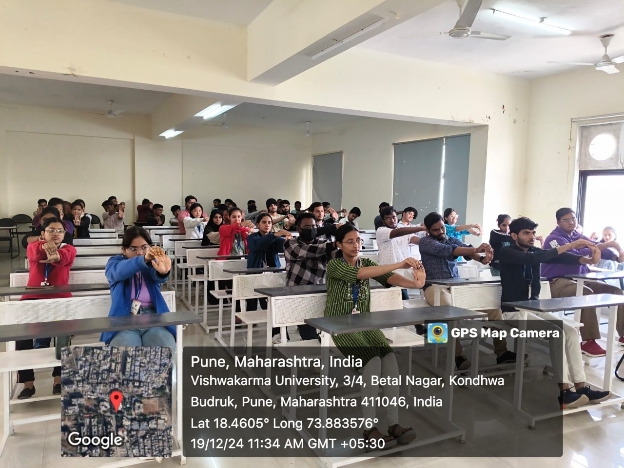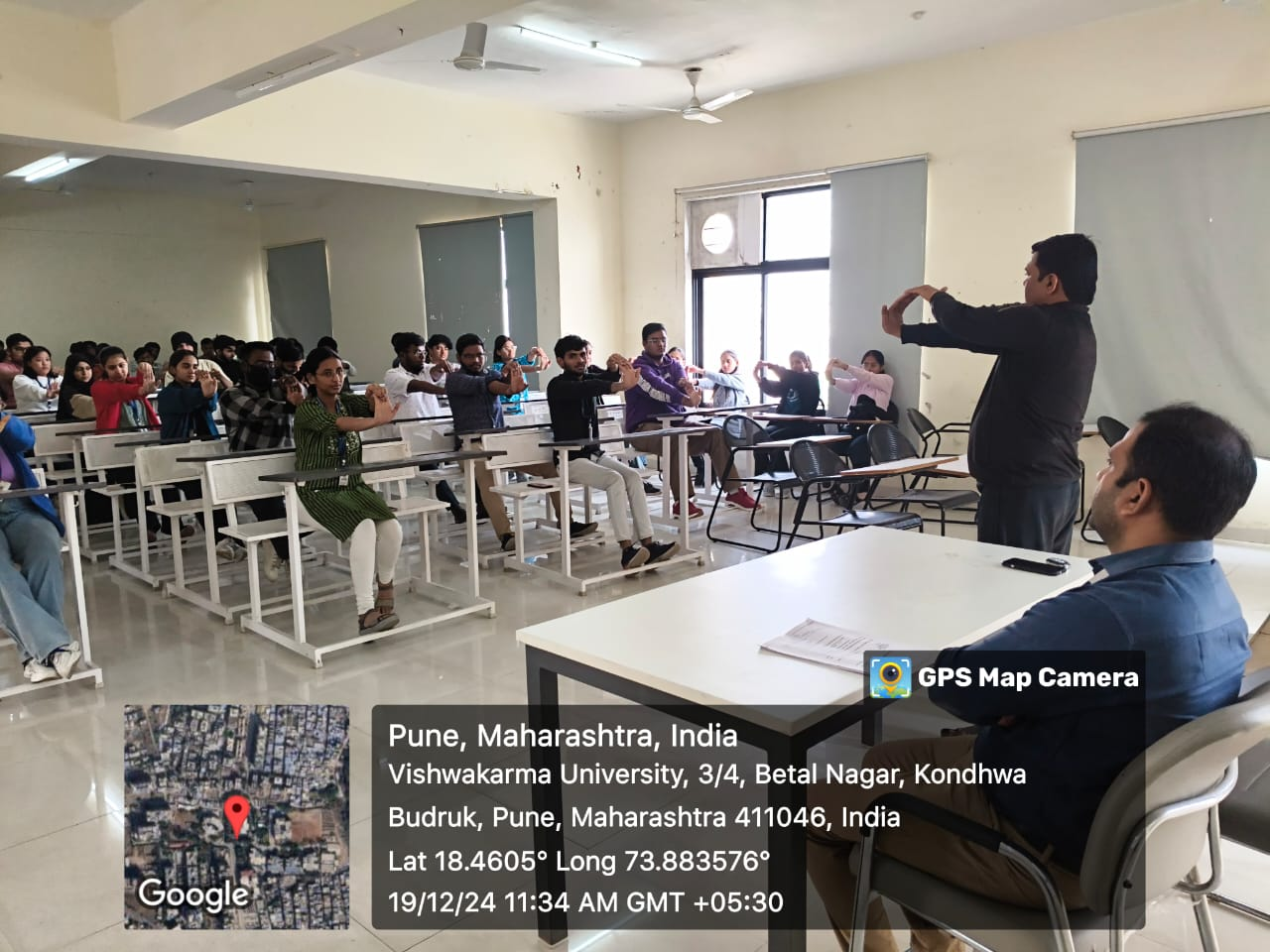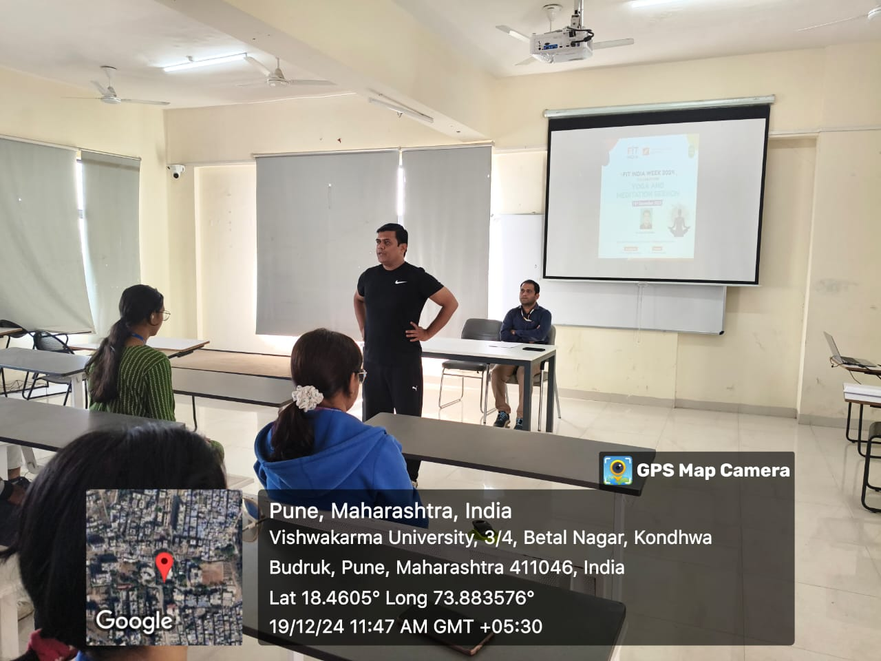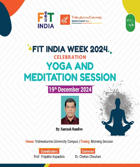On 19th December 2024, a highly enlightening guest session on Yoga and Meditation was conducted at Vishwakarma University under “Fit India Week Celebration 2024”. The event featured Mr. Santosh Randive, a renowned yoga therapist with extensive experience in holistic wellness and mindfulness practices, as the guest speaker. The session aimed to promote awareness about the benefits of yoga and meditation in enhancing physical, mental, and emotional well-being. The session was attended by 55 participants, including students and faculty.