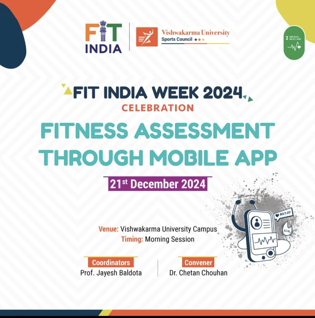 As part of the FIT India Week celebrations, a Fitness Assessment Activity was conducted through a mobile application to aware the students about their fitness level. Students assessed their own fitness through mobile app at their home. The University and student council aware the students about the Fit India Fitness App. They also aware the students about the registration process on Fit India Mobile App. Many students from Vishwakarma University registered themselves on Fit India Mobile App and assess their physical fitness. The activity aimed to provide participants with a convenient and tech-enabled method to evaluate their fitness levels and set personalized fitness goals.