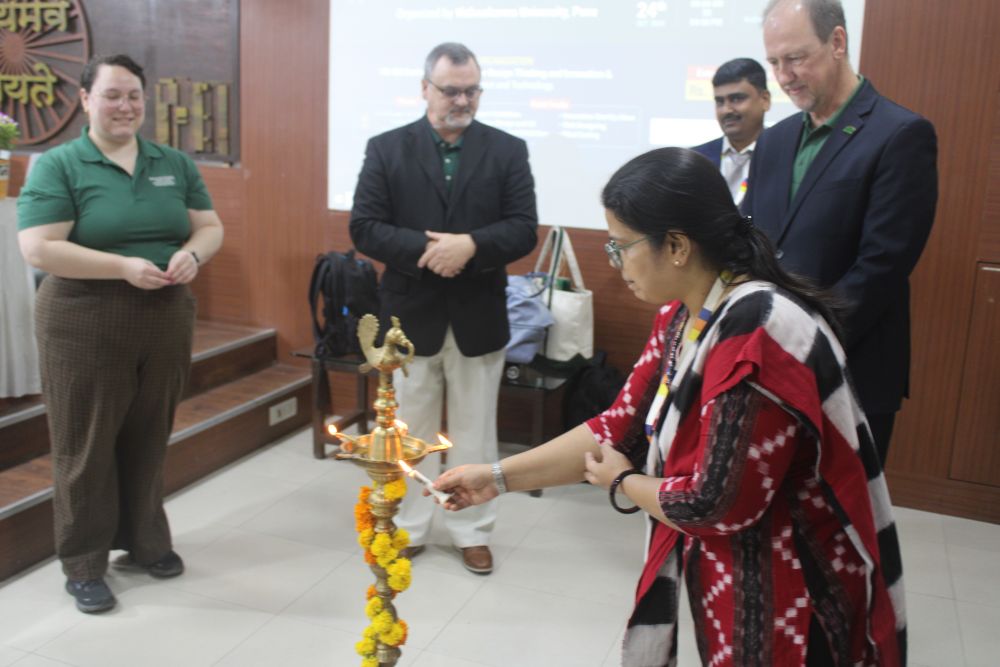 The ceremony commenced with a traditional lamp-lighting ceremony symbolized the beginning of Innovation Fest 2024. The Chief Guest Dr. Peter Partell, Senior Assoc. Dean, Academic Affairs & Admin, Thomas J. Watson School of Engineering & Applied Science, Binghamton University, New York along with Prof. Michael Testani, Senior Director of Outreach and Engagement, Thomas J. Watson College of Engineering and Applied Science, Binghamton University, New York, Ms. Johanna Brozinsky, Graduate Recruiter at Binghamton University, New York Dr Kailas R Patil, Dean, Faculty of Science and Technology and Dr. Sandip Thite, Co-Convenor of the event &Associate Dean, Faculty of Science and Technology, Vishwakarma University inaugurated the event with lightening of the ceremonial lamp. This symbolic act marked the commitment to fostering a spirit of innovation and collaboration within the institution and beyond.