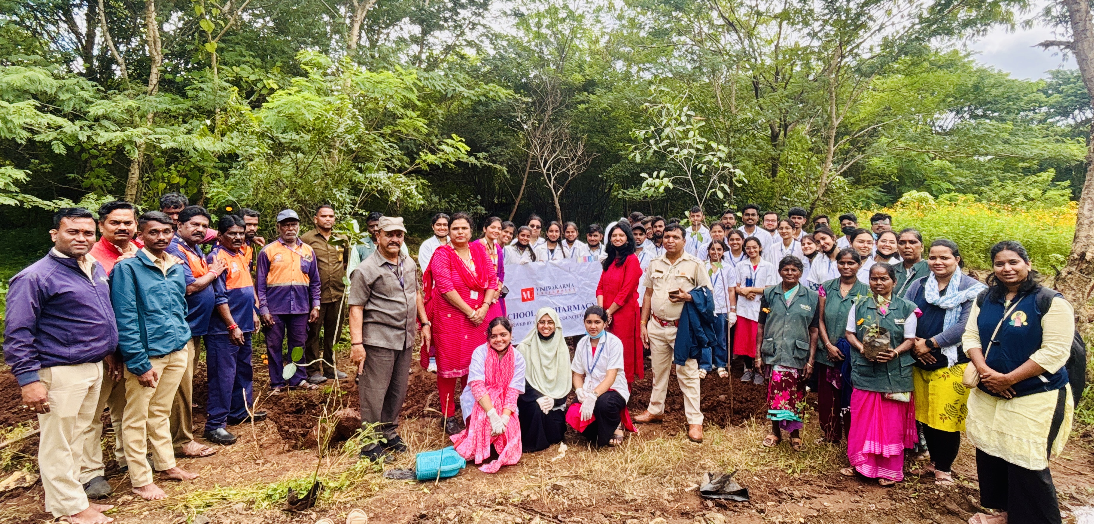 The School of Pharmacy, Vishwakarma University, Pune in collaboration with Centre of Sustainability Nexus, organized and conducted a Tree Plantation Drive at Taljai Hills, Pune, planting native saplings to enhance green cover, restore biodiversity, and raise awareness about environmental conservation. This initiative contributes to SDG 13 (Climate Action) by mitigating climate change, SDG 15 (Life on Land) by supporting ecosystems, and SDG 11 (Sustainable Cities and Communities) by promoting greener, healthier urban spaces, reflecting a strong commitment to sustainability and community engagement.
