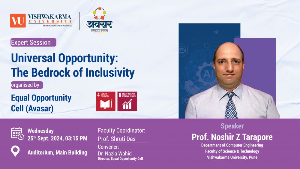 Prof. Noshir Tarapore provided the expert session which shed light on why equal access to opportunities is the foundation of an inclusive society. Our expert today will explore how institutions can build frameworks that ensure everyone has the chance to succeed—whether it’s in education, employment, or broader social participation. By fostering such environments, we not only promote equality but also create a culture where every individual can flourish, bringing their unique strengths and perspectives to the forefront. Students across all disciples attended the session.