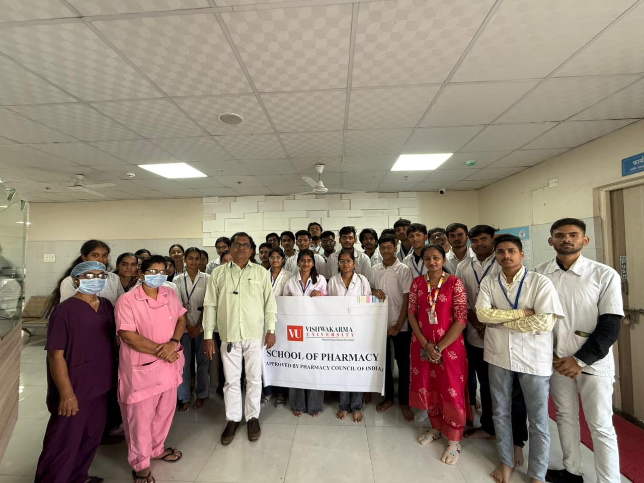 The Second Year Diploma in Pharmacy (AY 2025-2026) students from the School of Pharmacy, Vishwakarma University, Pune, visited BISMR Multispecialty Hospital, Bibwewadi, as a part of their academic curriculum to enhance practical learning and professional exposure. The visit aimed to familiarize students with real-time hospital operations, pharmacy management, and patient care practices. During the visit, students observed the functioning of various departments, including the outpatient, inpatient, ICU, NICU, dialysis centre and pharmacy sections. This experiential learning activity helped students bridge the gap between theoretical knowledge and practical application, promoting a deeper understanding of hospital pharmacy practices. The visit was organised and arranged by Prof. Archana Shaha.