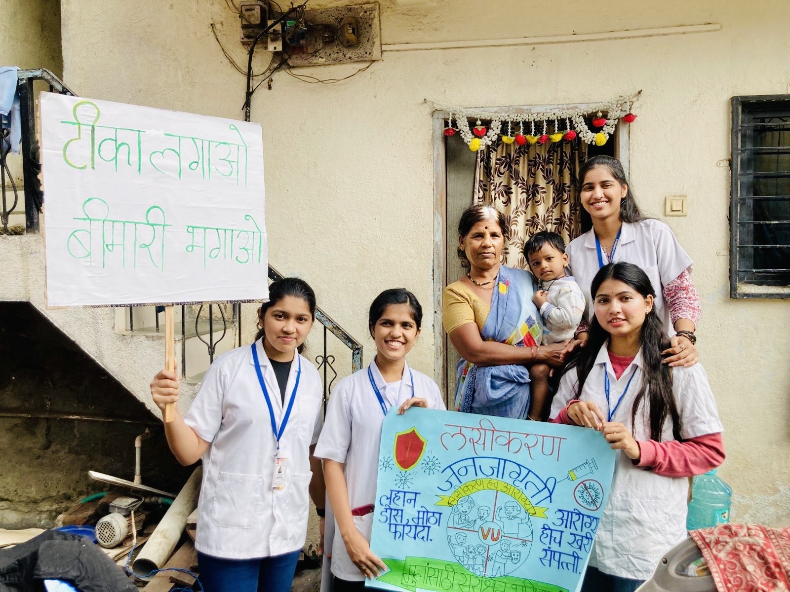 The School of Pharmacy, Vishwakarma University, Pune in collaboration with Centre of Sustainability Nexus organized a Vaccination Awareness Drive on the theme “Safe Care for Every Newborn and Every Child”. Highlights or the activities are Awareness rally with placards & slogans on child immunization, Health education sessions for parents & caregivers, Distribution of IEC materials in simple local language, Interactive sessions to clear myths & misconceptions. The drive encouraged parents and children to get vaccinated, become responsible for self-care and contribute to SDG 3: Good Health and Well-being (Ensure healthy lives and promote well-being for all at all ages) and SDG 4: Quality Education (Providing health literacy and education to parents and caregivers)
